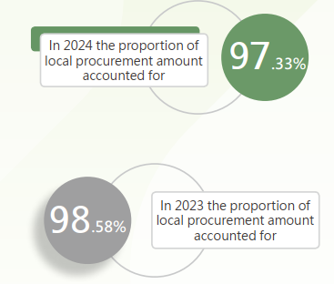 The Company adheres to the principle of local procurement to improve production efficiency, promote local economic development, create more employment opportunities, and minimize the carbon footprint of raw materials during transportation.
